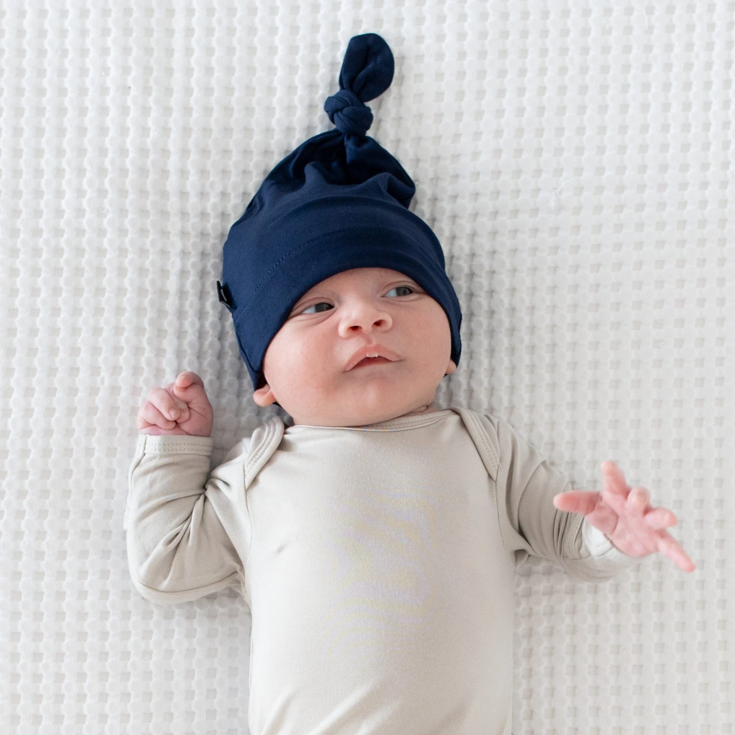 These knotted caps are made from ultra-soft bamboo rayon. The silky fabric is perfect for delicate skin, while the stretchy material accommodates a range of head circumferences. Available in a rainbow of modern colors, these caps are the finishing touch for any Kyte Baby outfit. For preemie or smaller babies, roll the edges of the cap up for a snug fit.